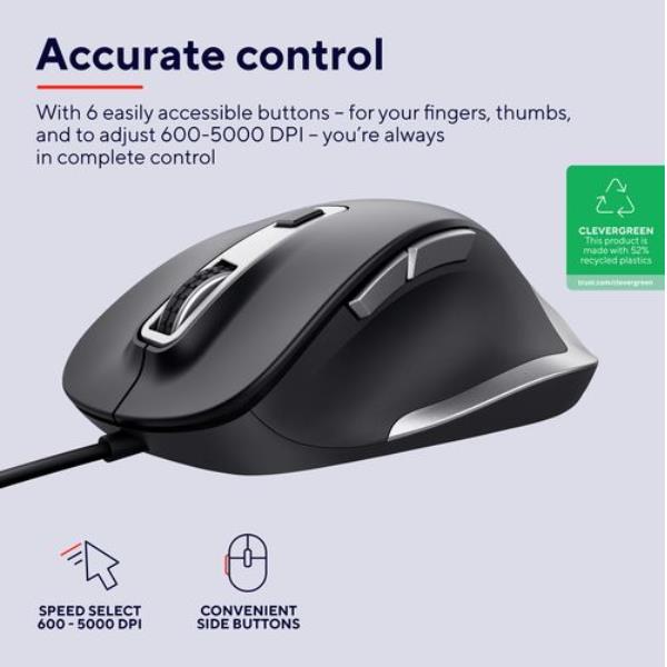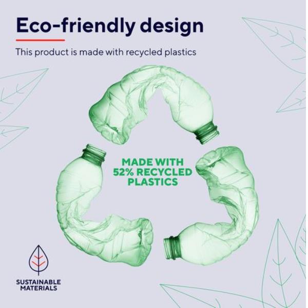 Il mouse Fyda è realizzato all’52% con materiali riciclati, per garantirti tranquillità indipendentemente da dove lavori.