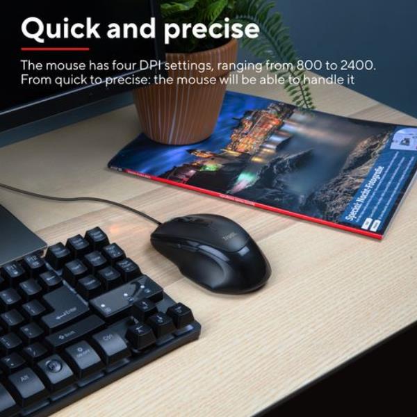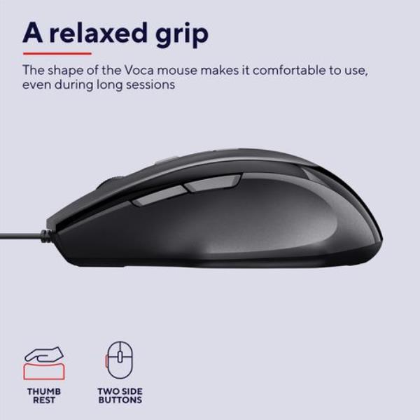 Con il design confortevole e quattro impostazioni diverse della velocità, il mouse Trust Voca Comfortable abbina la personalizzazione alla semplicità di utilizzo. Grazie alla semplice installazione Plug and Play, puoi iniziare subito a usare il mouse.