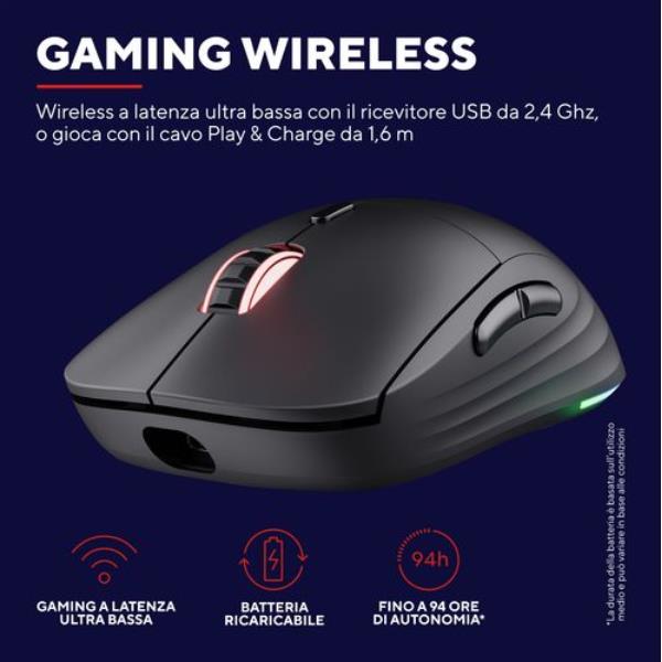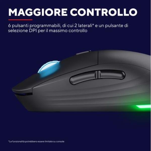 - Dual Connectivity: Wireless a 2.4 GHz (fino a 94h) o cablato con cavo da 1.6m incluso.