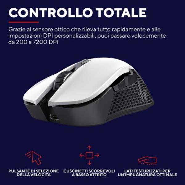 Prendi il controllo totale della sensibilità. Il sensore con DPI regolabili da 200 a 7200 ti permette di passare all’istante da movimenti ampi e fluidi a precisione millimetrica, a seconda delle esigenze del gioco.