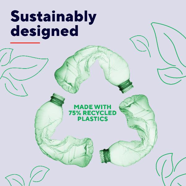 - Design Sostenibile: Realizzato con il 75% di plastica riciclata e packaging plastic-free.