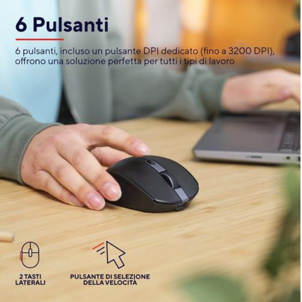 | Interfaccia mouse: Bluetooth + Wireless | Colore mouse: Nero | Ergonomico: Sì |