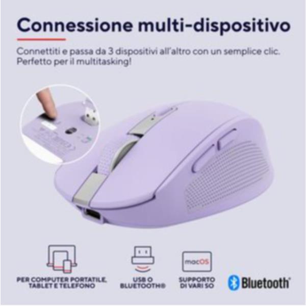 Devi lavorare su più dispositivi? Ozaa Compact è progettato proprio per questo. Grazie alla funzionalità di multiconnessione, potrai collegarlo in modalità wireless a un massimo di tre dispositivi tramite il ricevitore USB 2,4 GHz e la doppia connessione Bluetooth.
