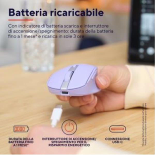Di’ addio alla scomodità di dover sempre avere delle batterie in casa. Grazie alla sua batteria ricaricabile, questo mouse è sempre pronto a partire e non ti lascia mai a piedi. Goditi ore e ore di utilizzo no-stop e continua a lavorare anche durante la ricarica, grazie al cavo in dotazione.