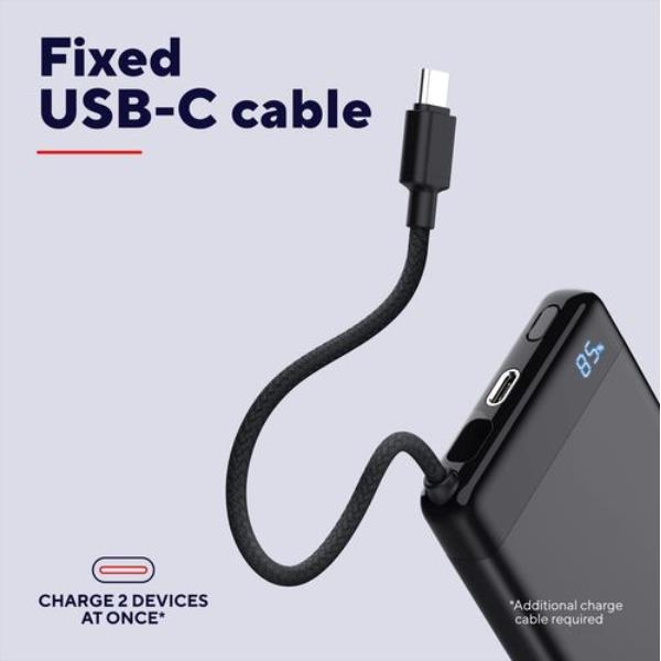 Grazie al cavo USB-C integrato da 20W, ricarichi il powerbank in modo rapido e, con la stessa potenza, dai una sferzata di energia al tuo dispositivo principale. Ma non è tutto: la seconda porta USB-C da 20W ti permette di alimentare due gadget contemporaneamente, condividendo la carica con un amico o ricaricando smartphone e auricolari insieme.