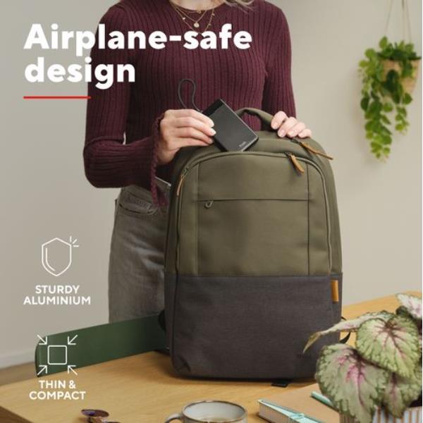 Portarlo con sé è semplicissimo. Ha un design ultra sottile, simile a quello di uno smartphone, che scivola in qualsiasi tasca o taschino della borsa. In più, è approvato per il trasporto aereo, quindi puoi portarlo con te in viaggio senza pensieri. Il pratico display LED ti mostra sempre la percentuale di batteria residua, così sai esattamente quanta autonomia ti resta.
