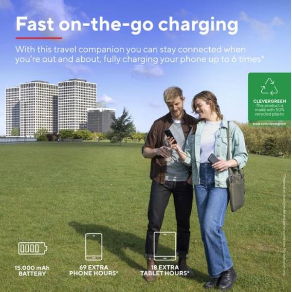 L’elevata capacità racchiusa in un design compatto ti consente di infilarlo in borsa, ricaricare e partire, senza ulteriore peso o massa da portare quotidianamente con te, insieme alla possibilità grazie alla capacità di ricaricare rapidamente i dispositivi più volte alla velocità massima.** **Ricarica rapida con la velocità massima tramite USB-C (15 W) o USB-A (12 W). La velocità di ricarica dipende dai vari dispositivi.