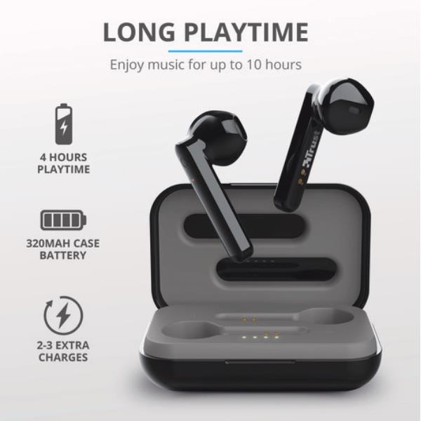 Fino a 4 ore di autonomia con una singola ricarica. Hai esaurito la carica? Infila gli auricolari nella custodia: otterrai fino a 10 ore di autonomia totale.