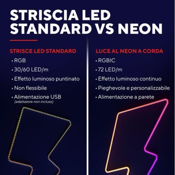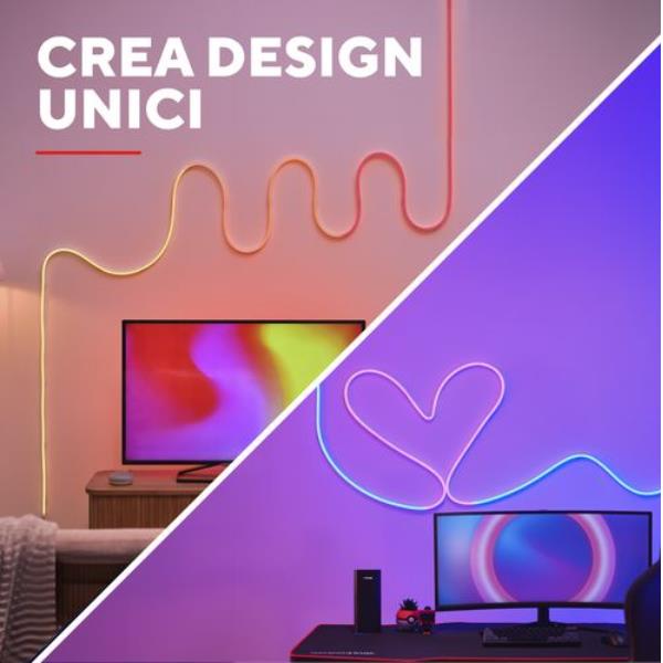 Con i suoi 5 metri di lunghezza e la flessibilità totale, questa striscia si adatta letteralmente alla tua creatività. Attaccala al muro e modellala per creare scritte, sagome, decorazioni astratte o qualsiasi disegno ti passi per la mente. Le istruzioni sono semplici: attacchi, pieghi e fissi. Il risultato? Una luce personalizzata che dà carattere alla tua stanza in pochi minuti.