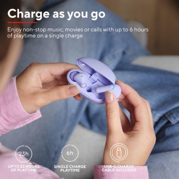 Non c’è niente di peggio che la batteria dei tuoi auricolari si esaurisca proprio nel bel mezzo della tua canzone preferita. Con un massimo di 6 ore di riproduzione con una singola carica, questi auricolari ti garantiscono di goderti musica, film o chiamate senza interruzioni mentre sei in viaggio. Inoltre, quando stai per esaurire la batteria, basta inserirla nella custodia di ricarica compatta per un totale di fino a 23 ore di riproduzione!
