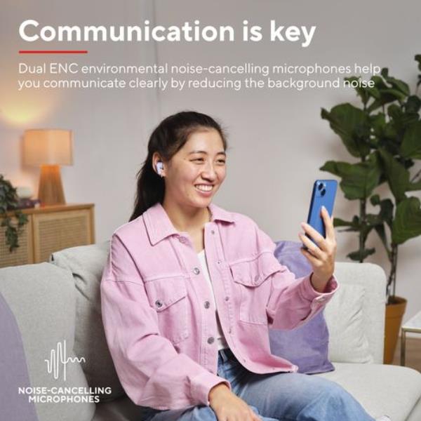Che tu sia fuori a correre, in treno o a rilassarti a casa, elimina qualsiasi fastidioso rumore di fondo grazie ai doppi microfoni ENC con cancellazione del rumore ambientale di questi auricolari. Lascia che i tuoi amici, familiari e colleghi sentano di più su di te e meno su ciò che accade intorno a te.