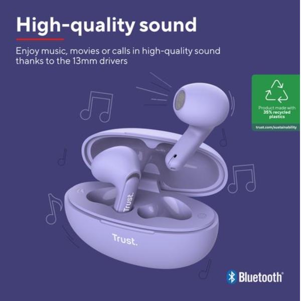 Auricolari True Wireless Trust YAVI Viola Bluetooth Riduzione Rumore ENC