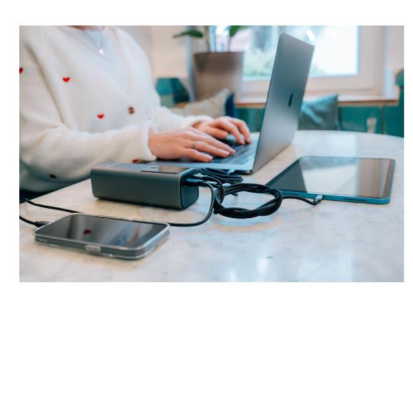 - Design pratico e sicuro: Il corpo in metallo robusto ospita sistemi di protezione avanzati contro sovratensioni, cortocircuiti e surriscaldamento. Una porta USB-C è bidirezionale, per semplificare la ricarica del power bank stesso.