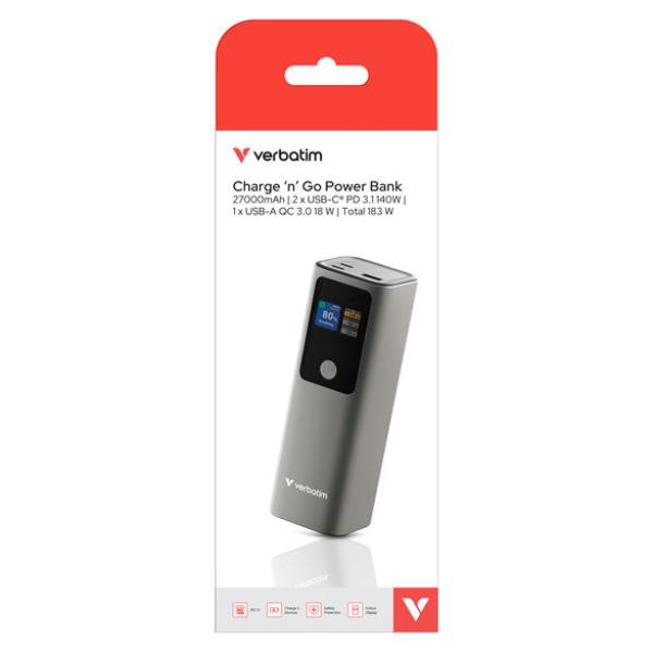 Il power bank Verbatim Charge ‘n’ Go da 27.000mAh è costruito per chi non può permettersi di rimanere a secco. Con una capacità enorme, ricarica il tuo laptop più volte e tiene in vita smartphone e tablet per giorni. È la soluzione definitiva per il lavoro da remoto, le trasferte o le lunghe giornate fuori casa.