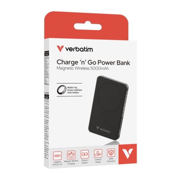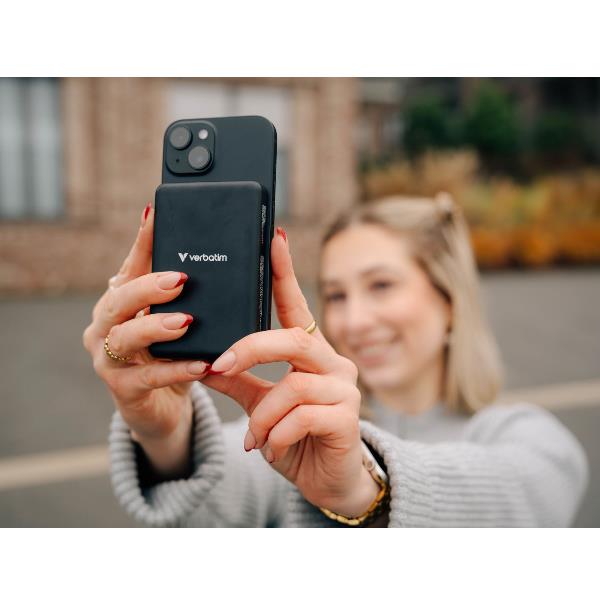 Non lasciare mai che il telefono si scarichi. Il power bank Verbatim Charge ‘n’ Go è la riserva di energia compatta e intelligente che ti segue ovunque, senza pesare.