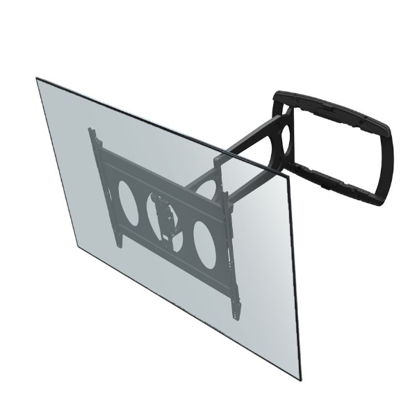 Il braccio oscillante si estende di 76 cm dalla parete offrendo un’inclinazione verso il basso di 15 ° per ottenere l’angolo di visione desiderato praticamente da qualsiasi punto della stanza. E’ un supporto leggero in alluminio che si richiude facilmente e agevolmente fino a una distanza di 3,8 cm dalla parete. Per mantenere l’alimentazione ed i cavi protetti quando si muove il display, sono previsti dei canali integrati nel braccio per raccogliere e gestire i cavi.