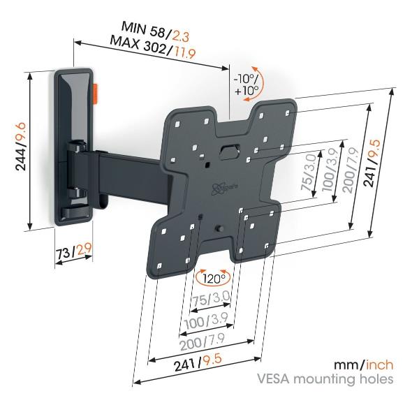 Sicurezza, design e comfort di visione vanno di pari passo con questo elegante supporto a parete per TV COMFORT Full-Motion. Questo supporto a parete è appositamente progettato per l’uso intensivo. È molto robusto e garantisce un’esperienza visiva ottimale. Puoi ruotare il supporto a parete fino a 120° e inclinarlo di 20° (10° in avanti e 10° indietro). Il supporto a parete è adatto a TV da 19 a 43 pollici con peso fino a 15 kg.
