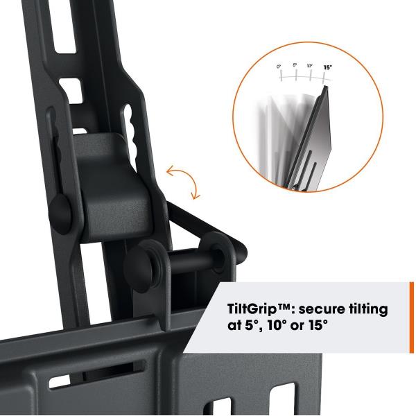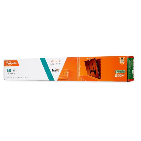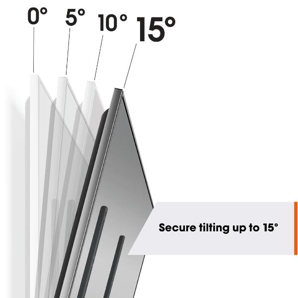 Rendi le cose semplici e comode per te con il supporto a parete per TV QUICK Tilt. L’installazione è estremamente facile. Puoi montare la tua TV a parete in massimo 20 minuti. Inclinando il supporto a parete per TV di 5°, 10° o 15° è possibile impostare l’angolo di visione desiderato, il che è particolarmente utile se la TV è montata un po’ più in alto a parete. Il supporto a parete per TV è adatto a TV da 32 a 65 pollici con peso fino a 25 kg.