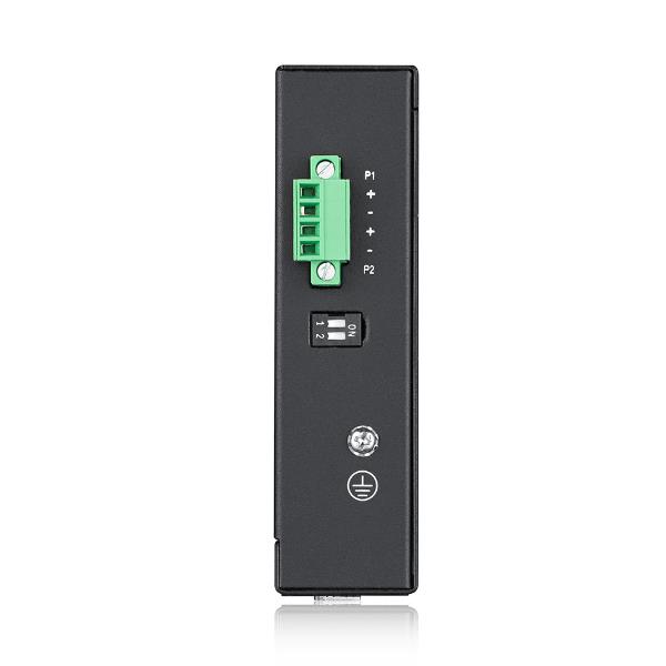 RGS100-5P – Switch 5 porte Unmanaged, 4 porte Gigabit PoE (erogazione fino a 120 Watt) + 1 porta Gigabit SFP – DIN Rail, IP30, doppia alimentazione 12-58V DC